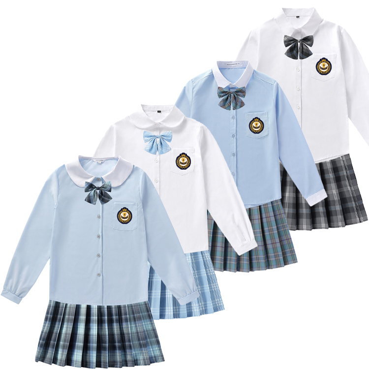 早秋季气质英伦学院风假两件连衣裙+长袖白衬衫送领结女两件套装