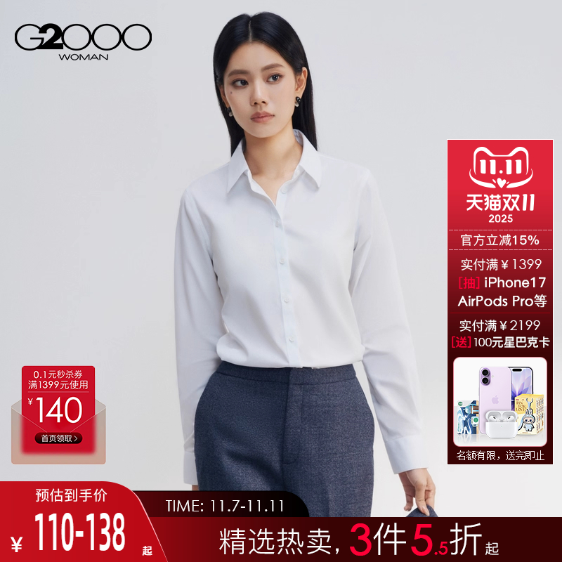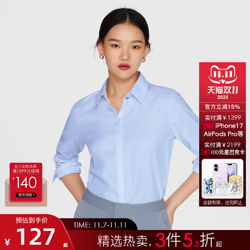 【易打理/可拆领结】G2000女装2025秋商场同款商务通勤长袖衬衫.