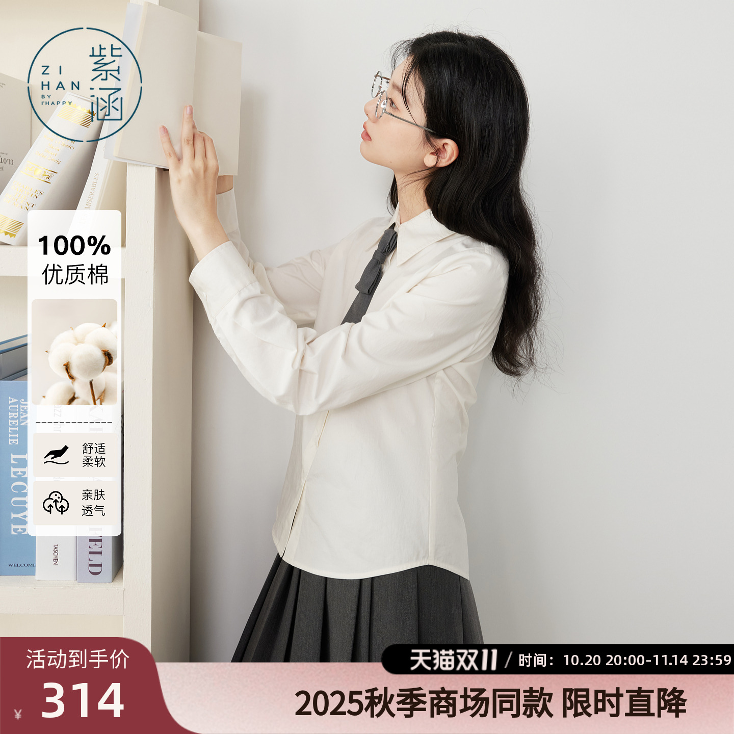 - 全棉白衬衫 女