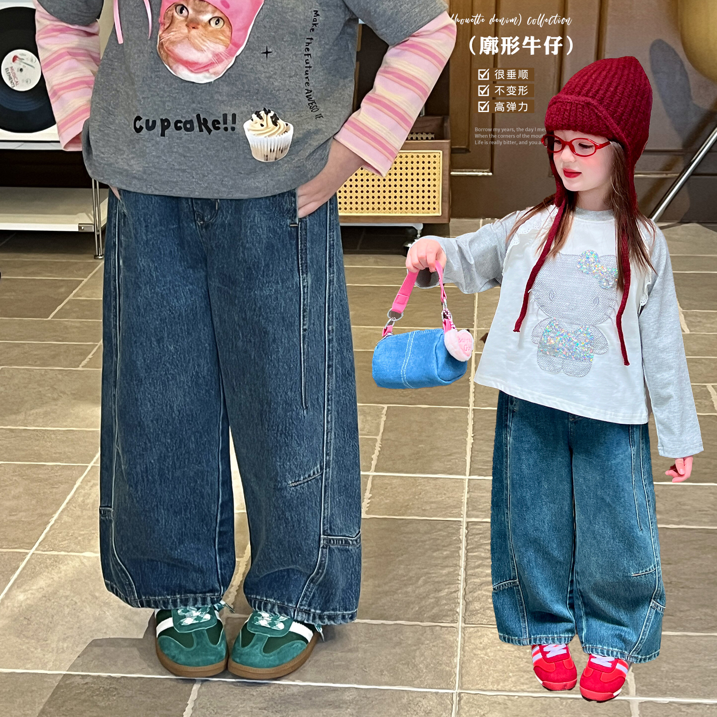 女童牛仔阔腿裤2025秋季新款儿童洋气宽松韩版休闲裤宝宝直筒裤子
