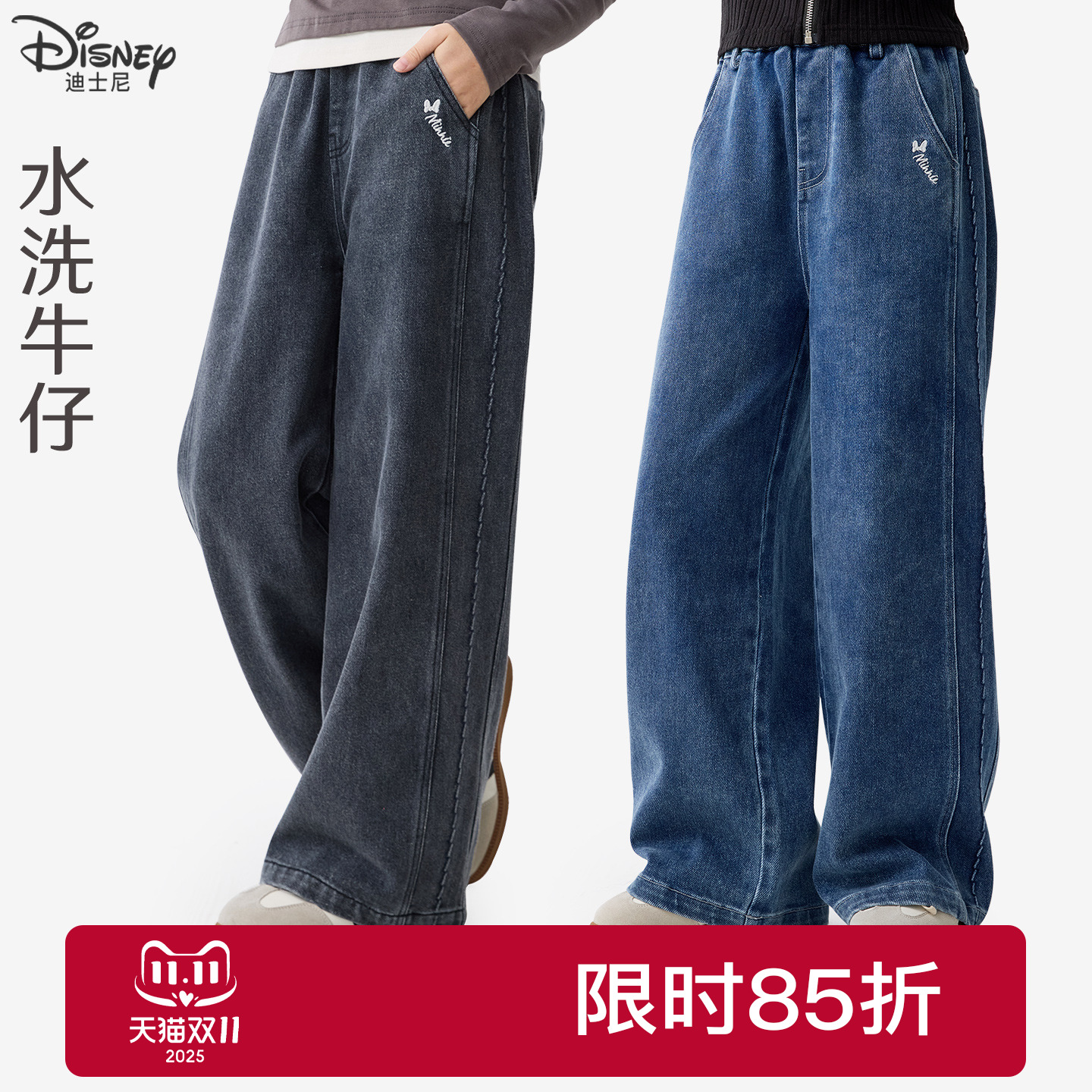 迪士尼女童牛仔裤秋季新款儿童裤子大童直筒阔腿裤青少年宽松韩版