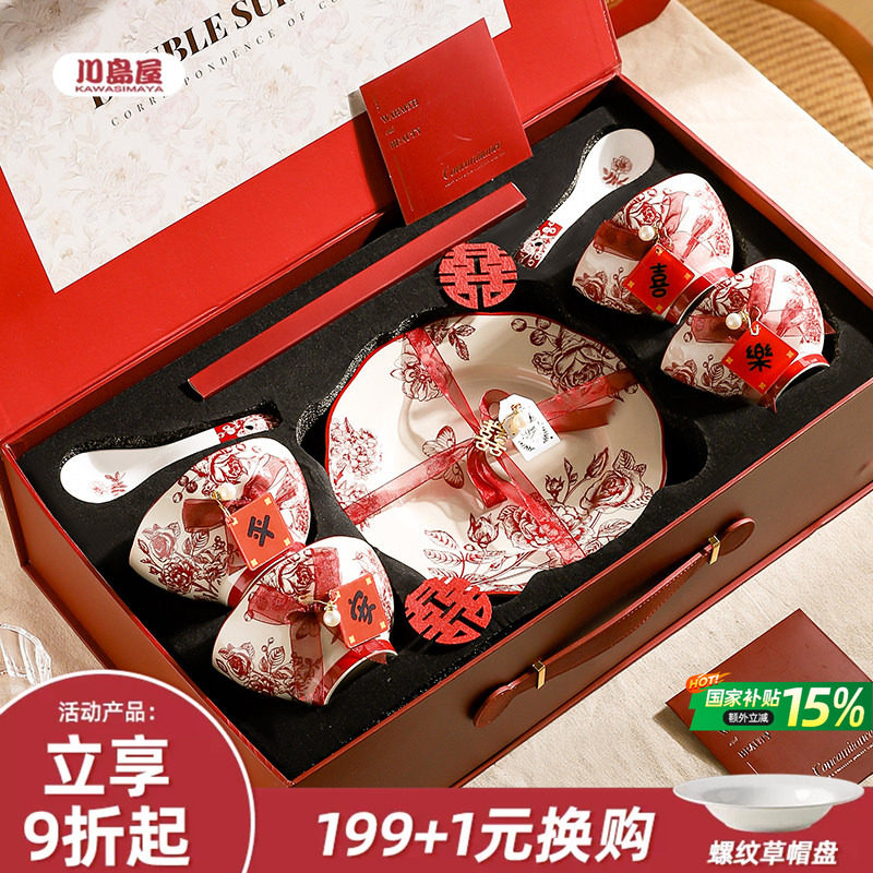 川岛屋结婚餐具礼盒红色碗具碗筷碗碟套装订婚新婚礼物送新人新娘