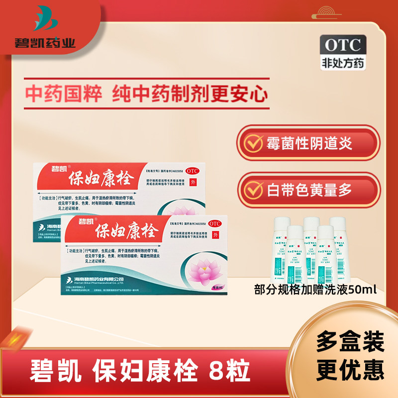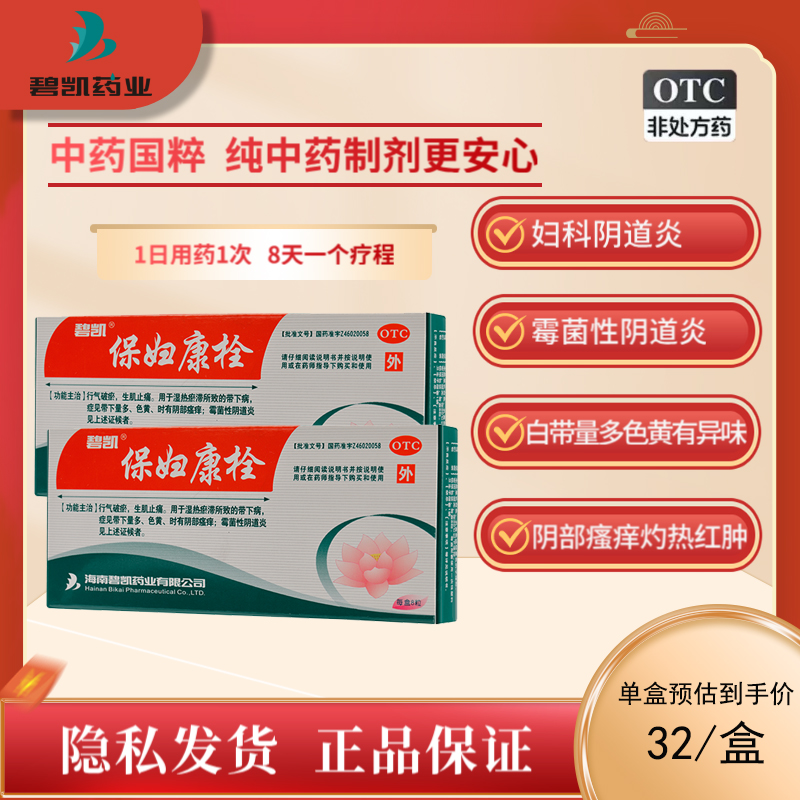 碧凯保妇康栓正品8粒霉菌性阴道炎妇科炎症白带异常瘙痒清凉止痒