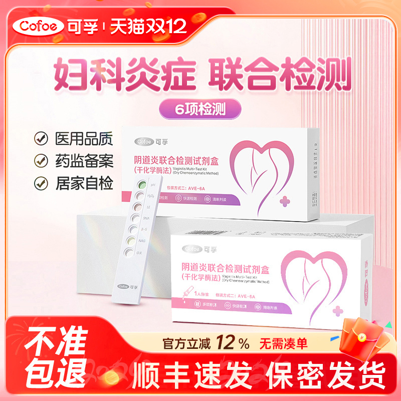 可孚阴道炎检测自检妇科炎症白带滴虫性霉菌试纸试剂盒自测六联卡