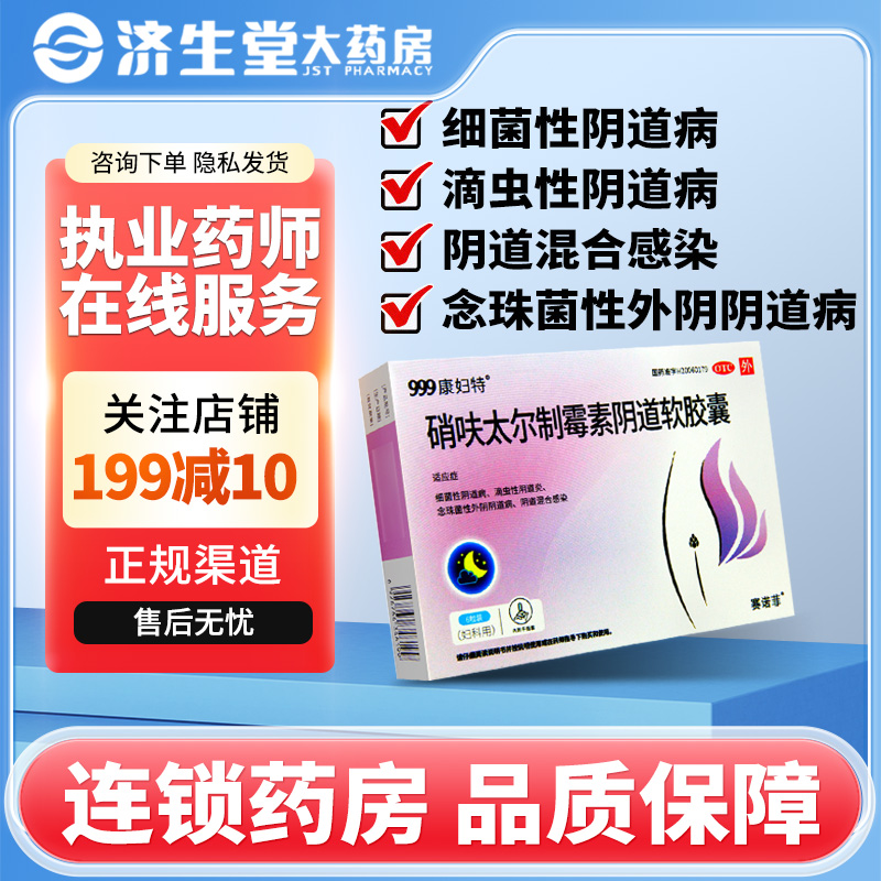 康妇特硝呋太尔制霉素阴道软胶囊6粒妇科炎症霉菌性阴道炎念珠菌