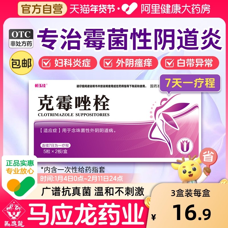 克霉唑阴道片正品旗舰店霉菌性阴道炎妇科炎症专用药栓挫外阴瘙痒