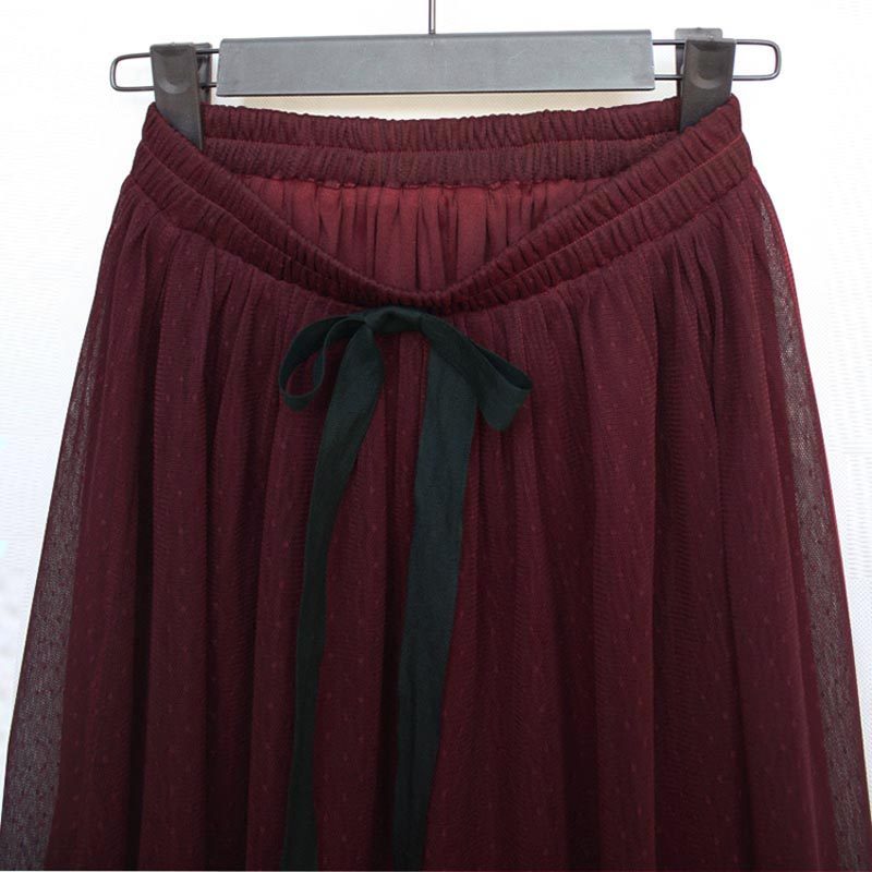 洋气范酒红色点点网纱半身长裙夏季新款系带蝴蝶结垂坠感长裙2021