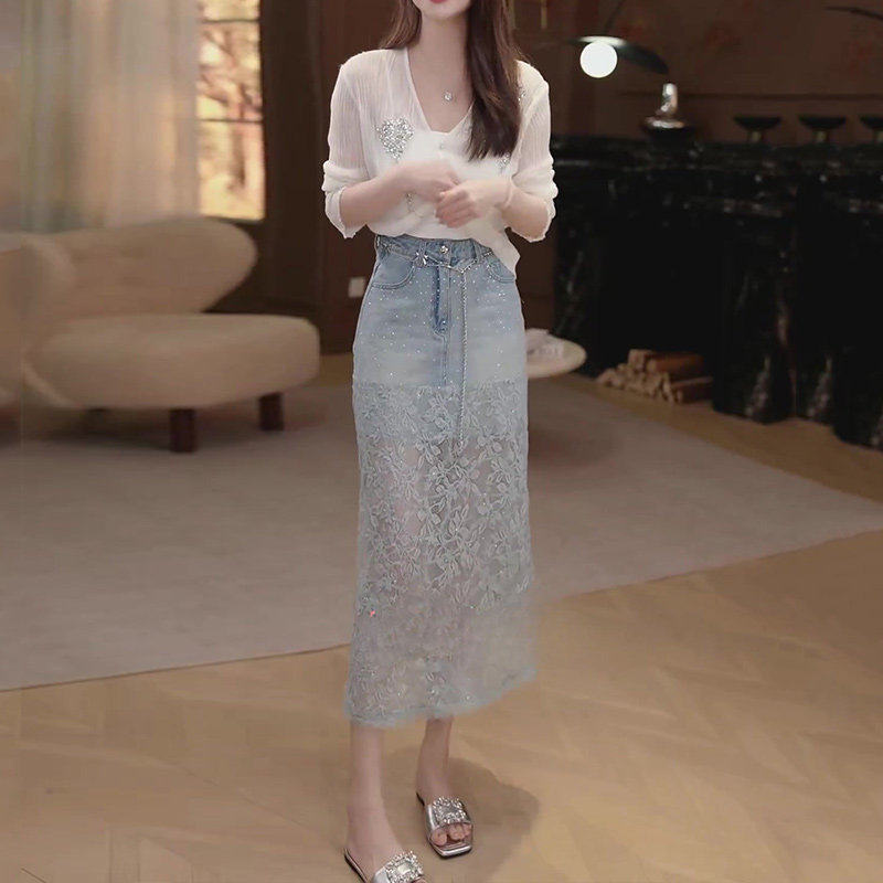 高腰开叉牛仔半身裙女2025年新款夏季小个子a字半裙复古包臀长裙