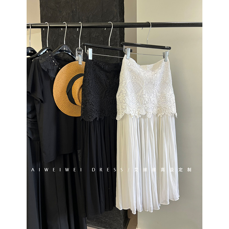 特价!重工水溶刺绣钩花腰头 下摆薄透百褶拼接半身长裙夏季新款