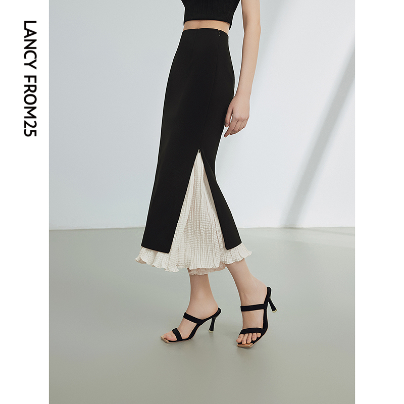 朗姿法式气质设计感高级感半身长裙夏季2024新款直筒高端半身裙女