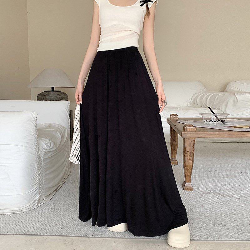 半身长裙夏莫代尔高腰黑色显瘦垂感大摆半裙A字伞裙到脚踝拖地裙