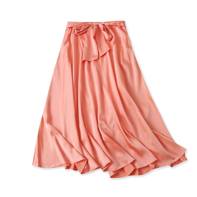 仿真丝半身长裙夏新款缎面系带A字版显瘦女外贸休闲裙子10382