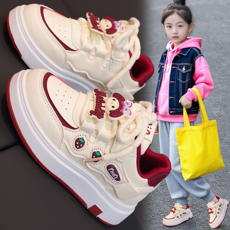 库洛米女童鞋子2025新款春秋儿童运动鞋皮面板鞋中大童女孩小白鞋