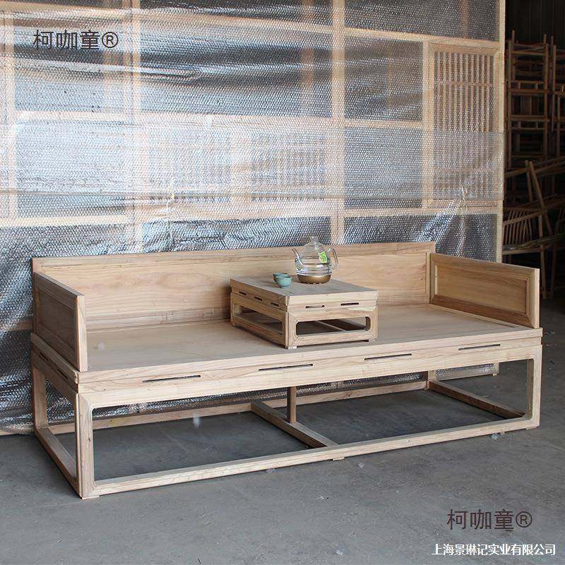 北方榆老木罗汉床白新茬实木榫卯CPN抽拉简约中式沙发汉贵罗妃麦