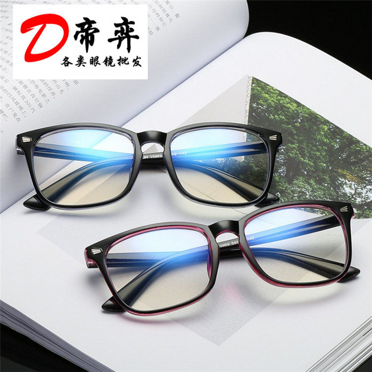 2018新款蓝膜平光镜批发 电脑镜米钉百搭护目镜 白色镜片眼镜框