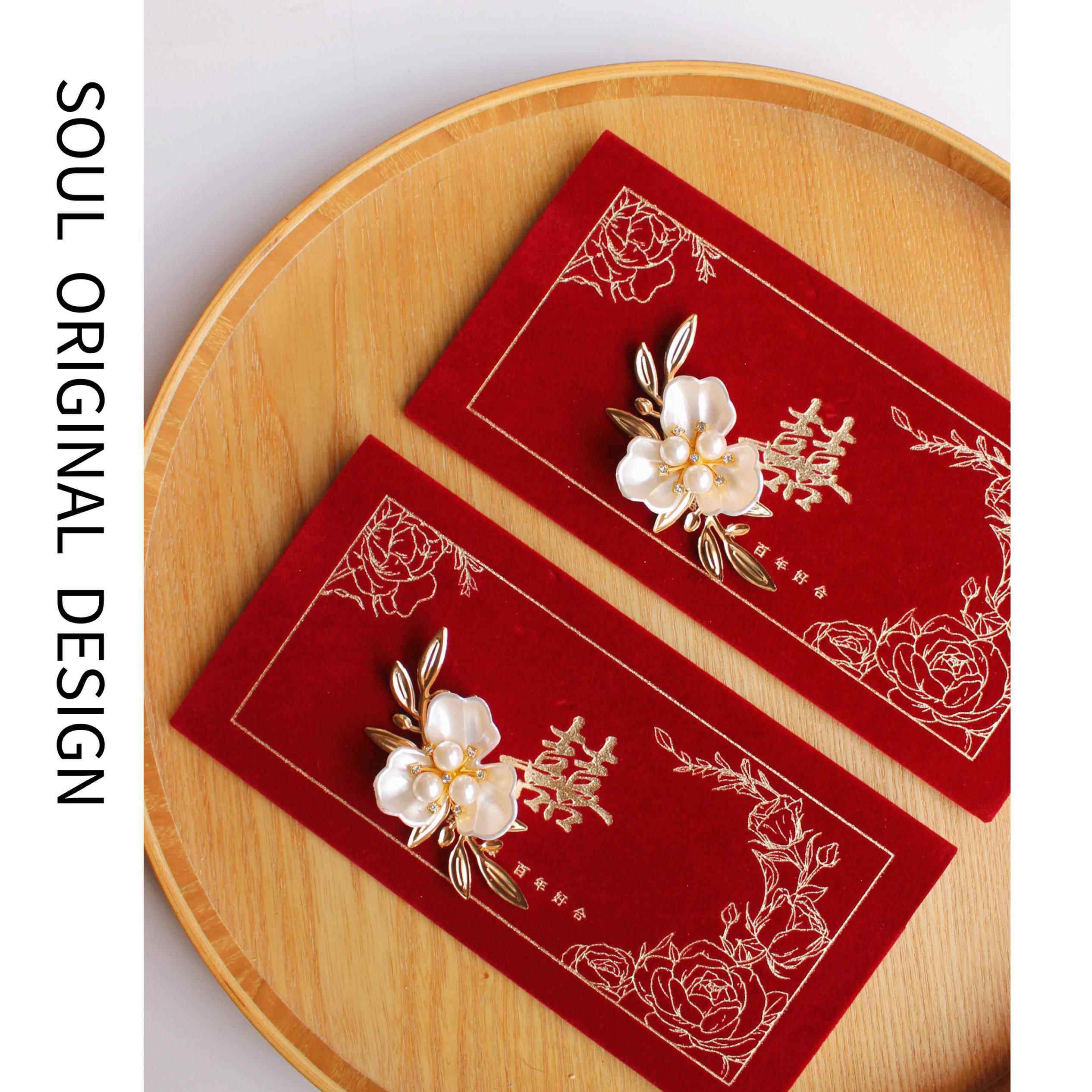 新的高豪华粉红白玉兰红色信封袋,婚礼,订婚,茶道,婚礼,红包