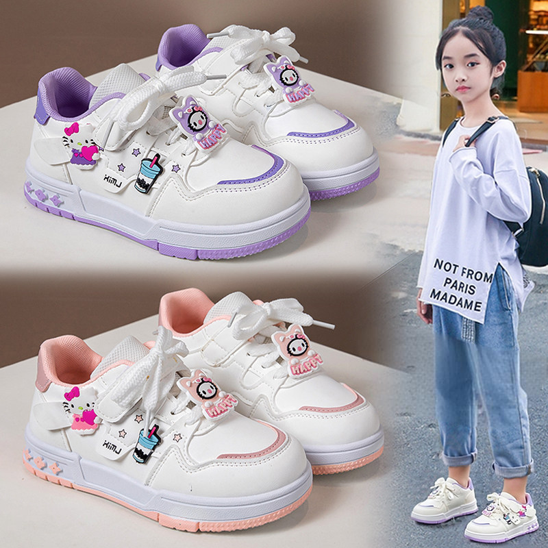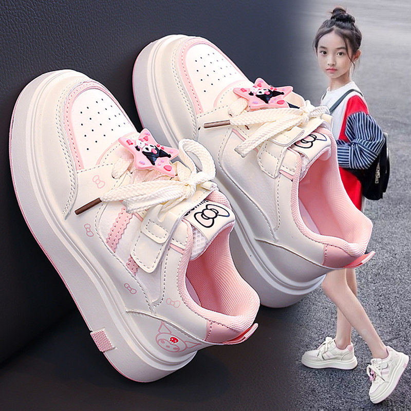 库洛米女童鞋子秋季2025新款儿童小白鞋运动板鞋防滑女孩公主洋气
