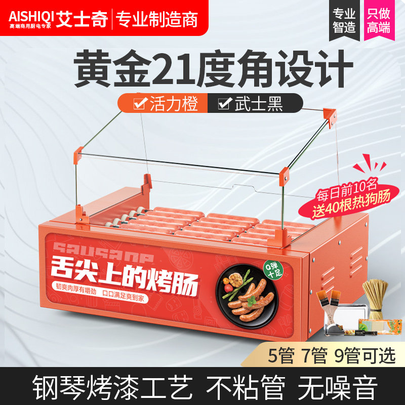 美莱特台湾5管烤肠机商用7管香肠机铁管烤肠11管全自动热狗防尘