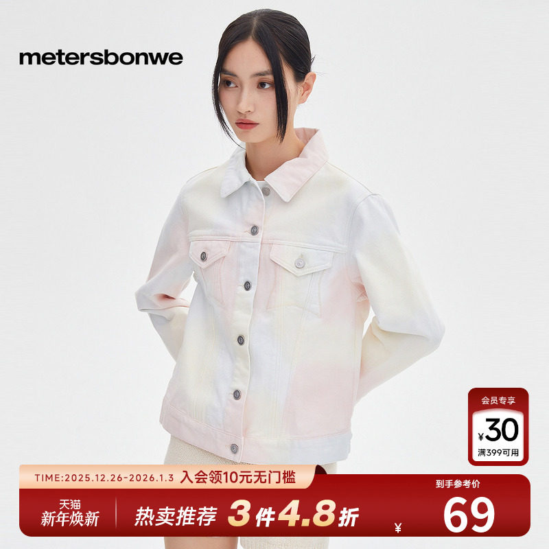 美特斯邦威牛仔夹克女春秋时尚甜美印花舒适潮流翻领休闲长袖外套