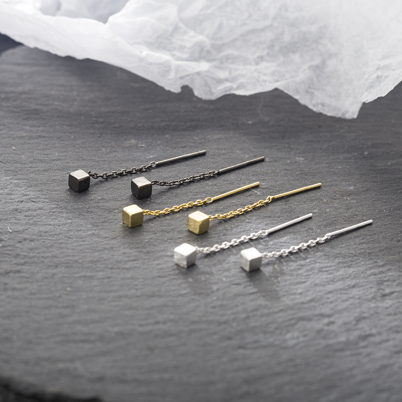 老银匠s925银几何立方耳线设计感年轻款通勤四边形耳线银耳饰女士