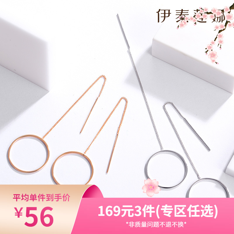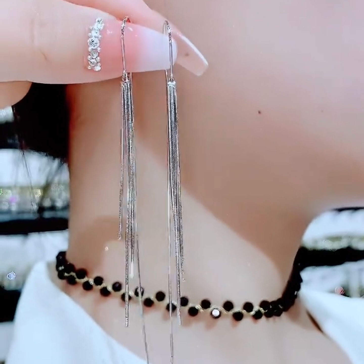 999纯银简约几何流苏耳环女小众设计耳钉养耳洞耳线冷淡风耳饰品
