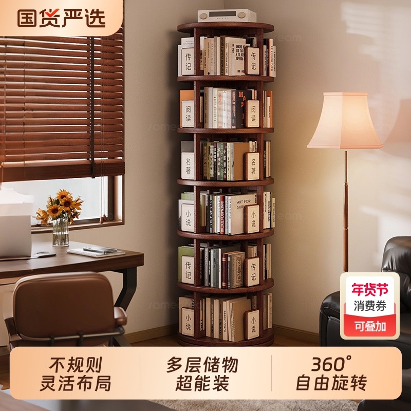 安居客360度实木旋转书架家庭儿童转角柜落地置物架简易一体靠墙