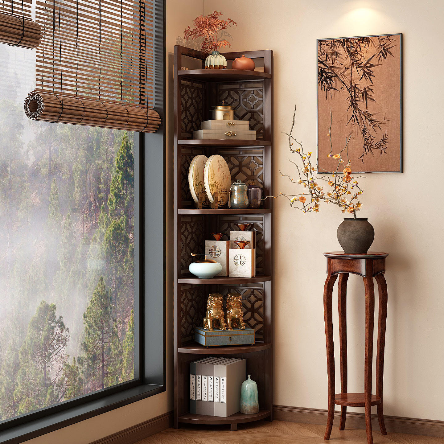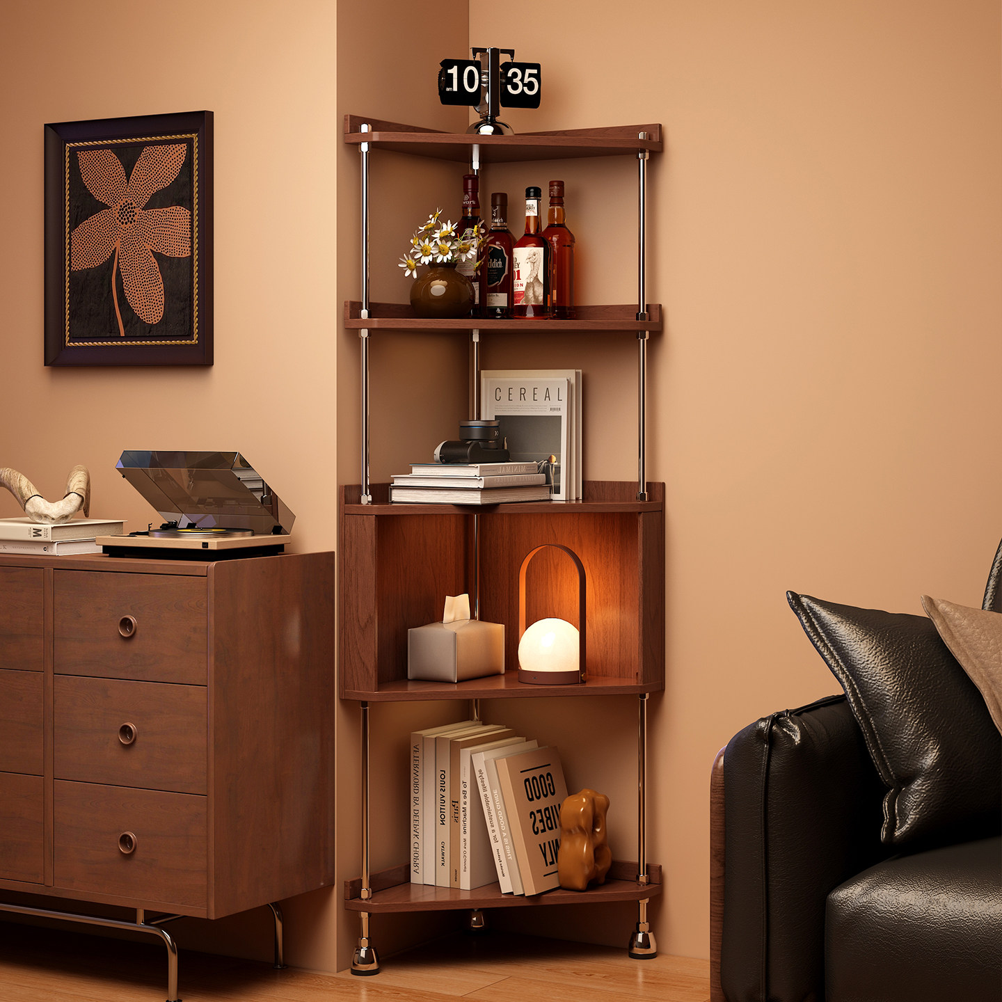 转角柜墙角置物架三角柜一体靠墙复古家用多层客厅书房角落收纳架