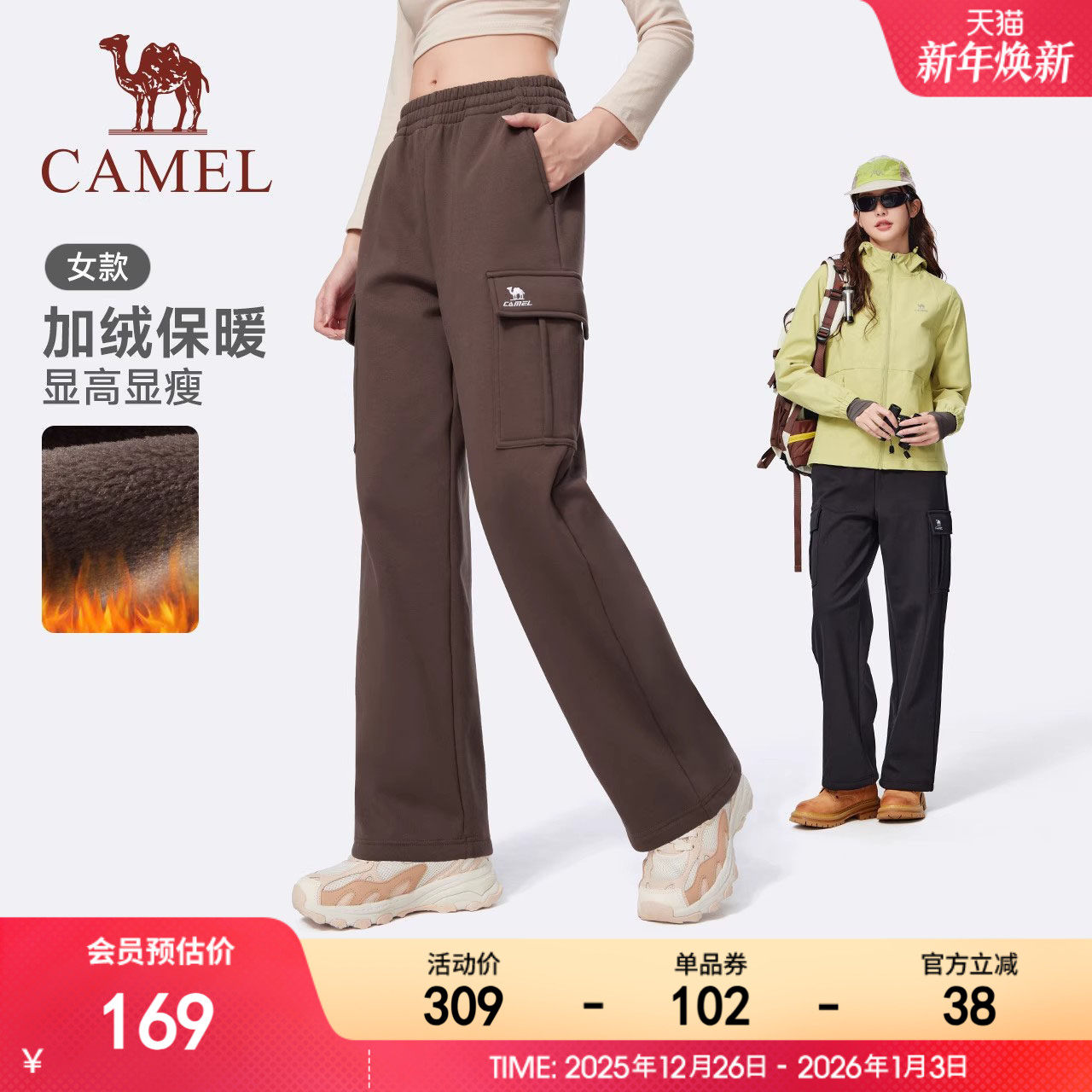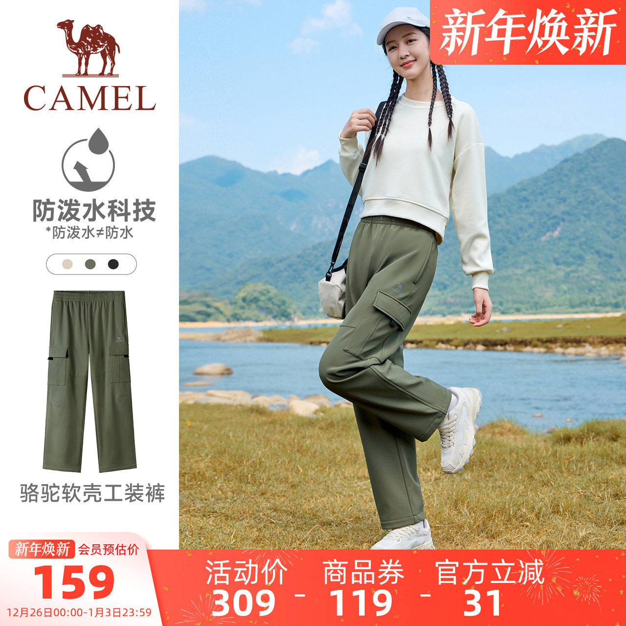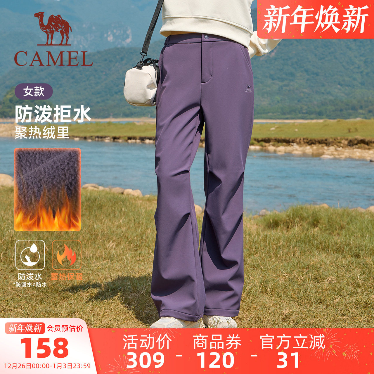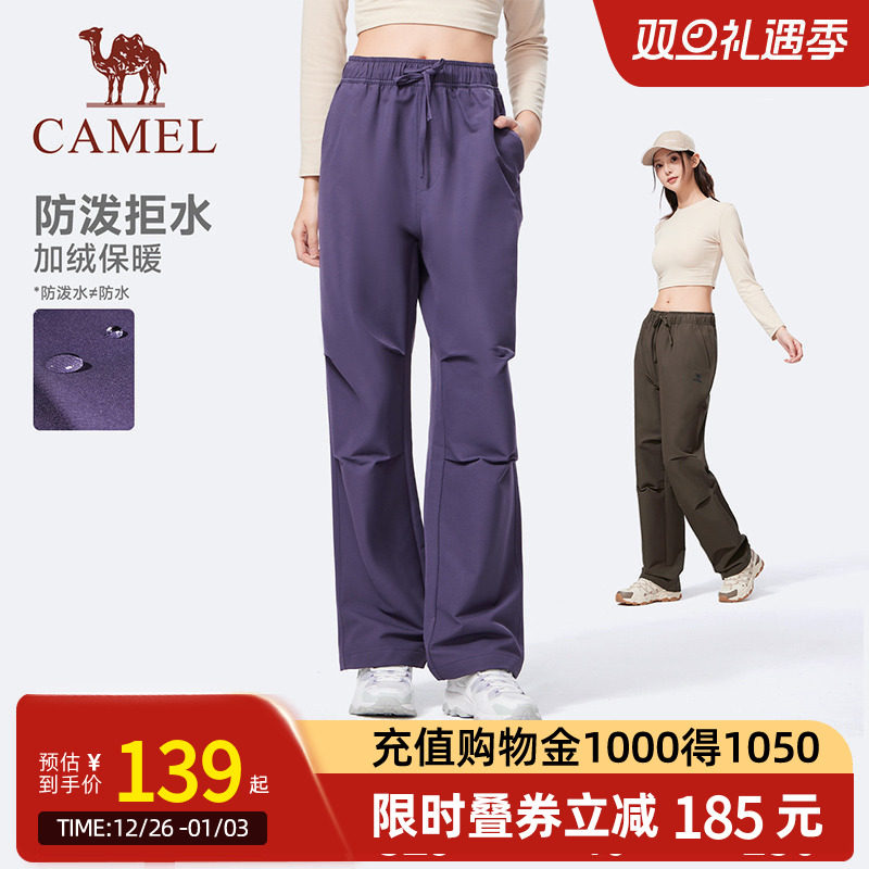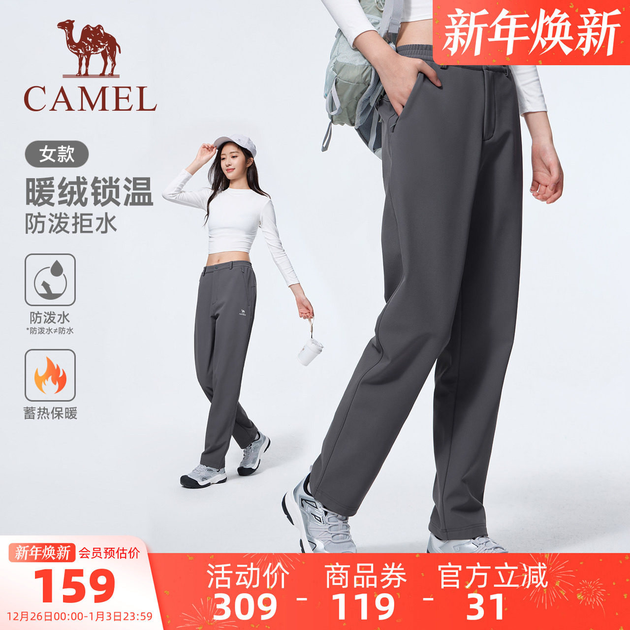 骆驼运动加绒裤女2025冬季直筒休闲宽松户外防泼工装软壳登山裤