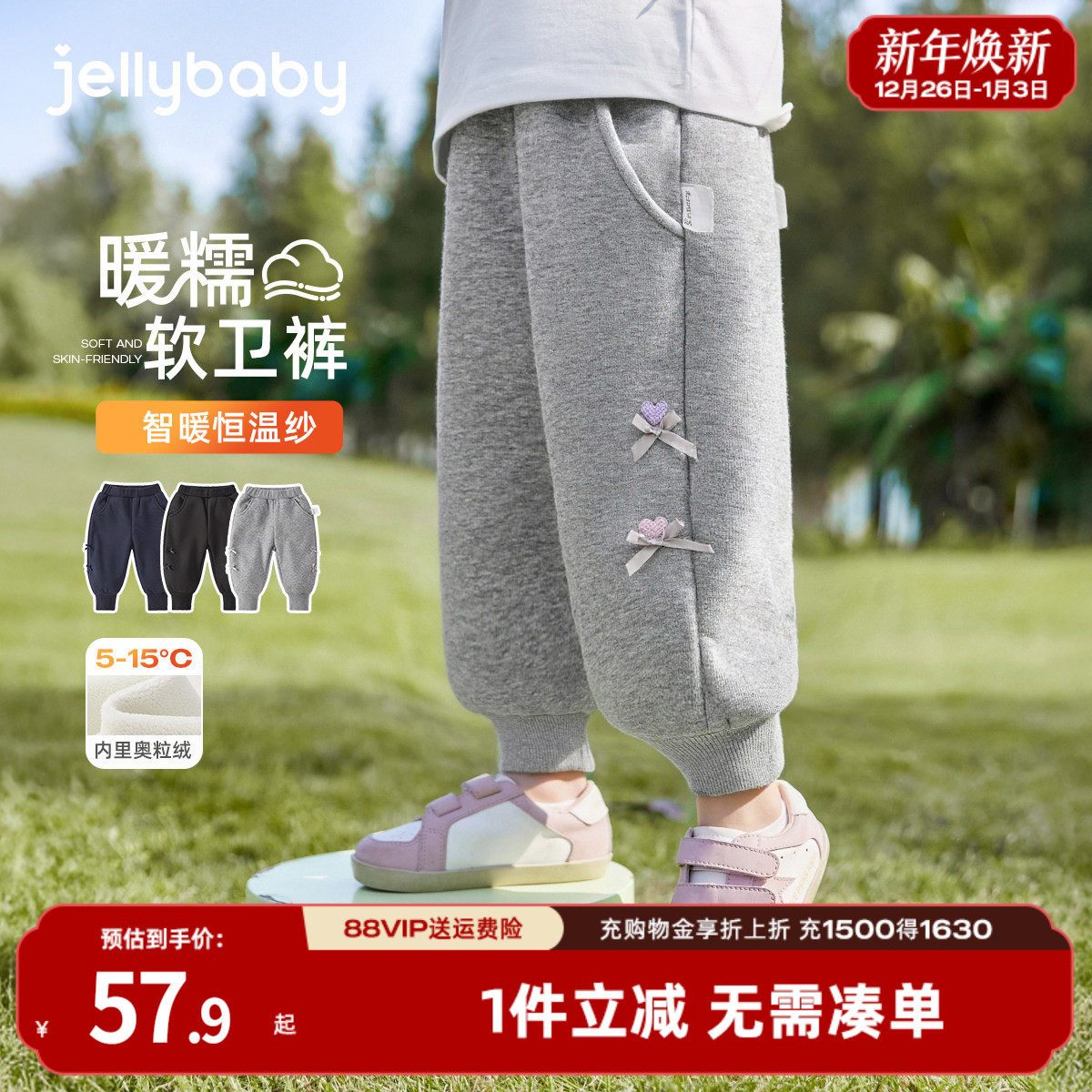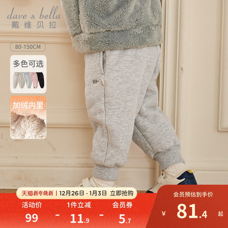 戴维贝拉男童加绒裤女童运动裤儿童裤子男宝宝秋冬长裤小童休闲裤