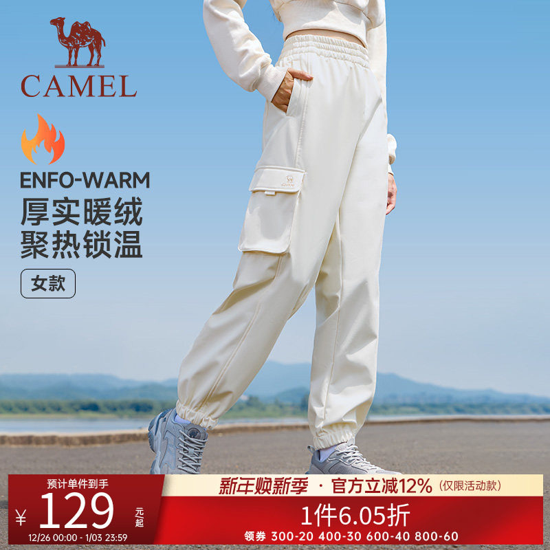 骆驼运动加绒裤女工装直筒伞兵裤宽松休闲户外防风防水保暖登山裤