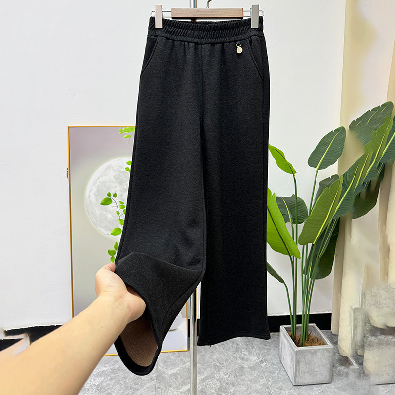 保暖加绒裤子女冬直筒裤休闲加厚外穿高腰百搭质感遮肉显腿阔腿q