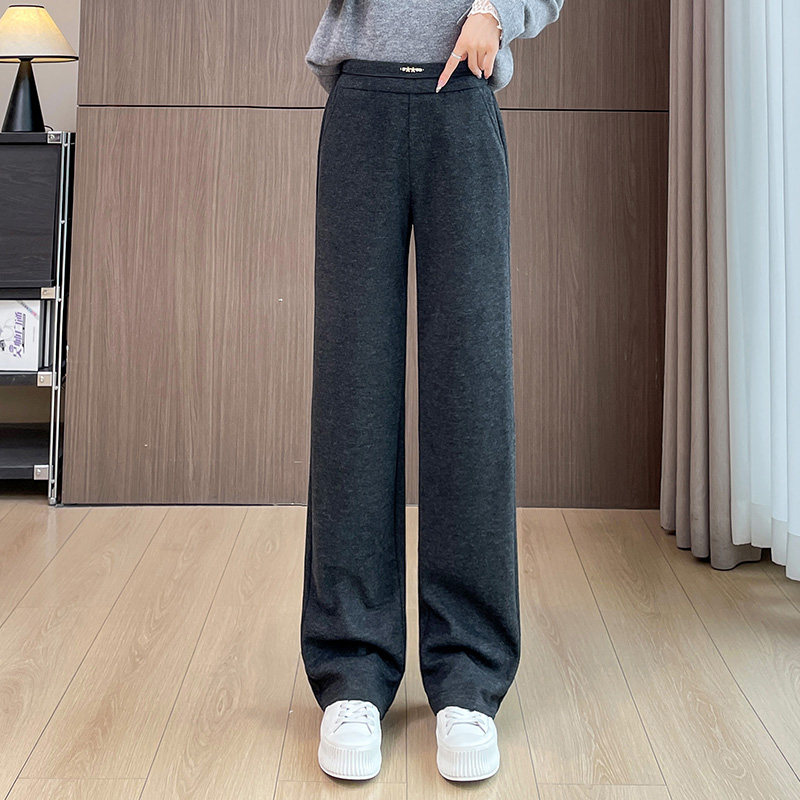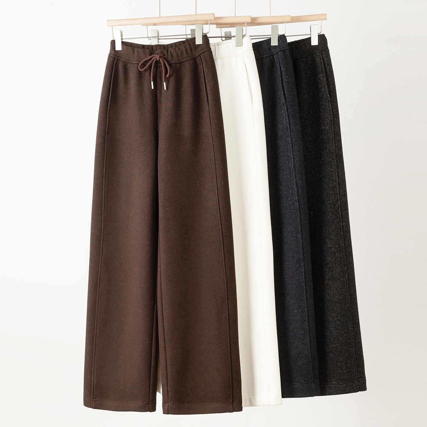 高智感羊毛阔腿裤新款立体垂坠感复合加绒裤女高腰保暖直筒休闲裤