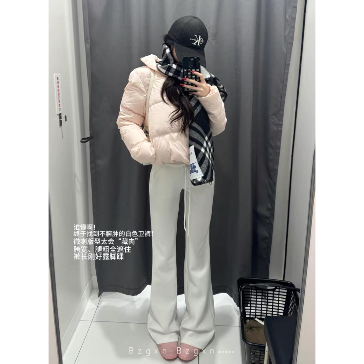 都市丽人加绒休闲裤女2025新款秋冬小个子大码白色加厚阔腿卫裤X