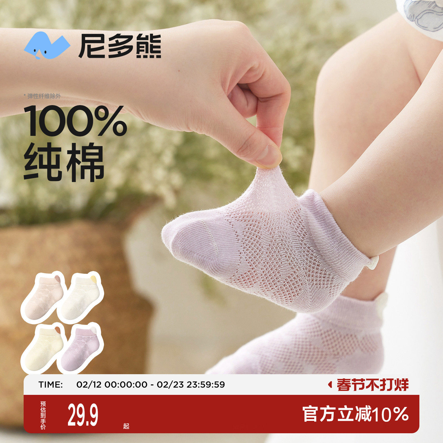 尼多熊婴儿袜子夏季薄款纯棉女宝宝网眼袜透气女童短筒袜儿童船袜