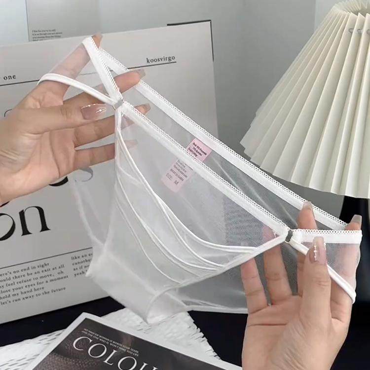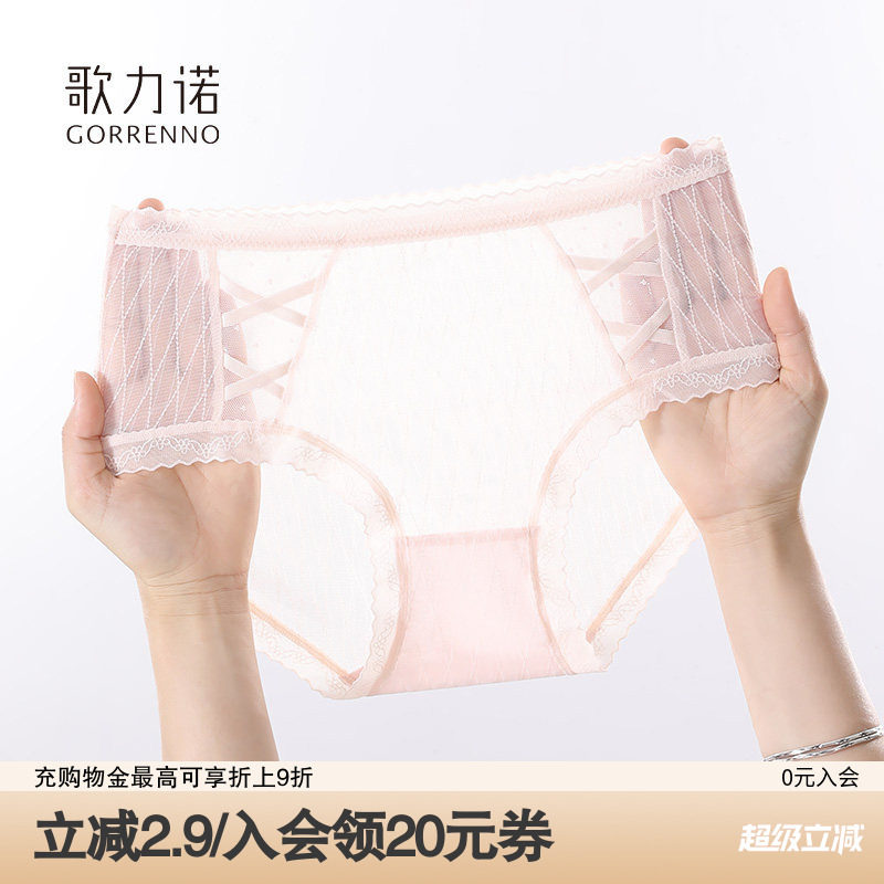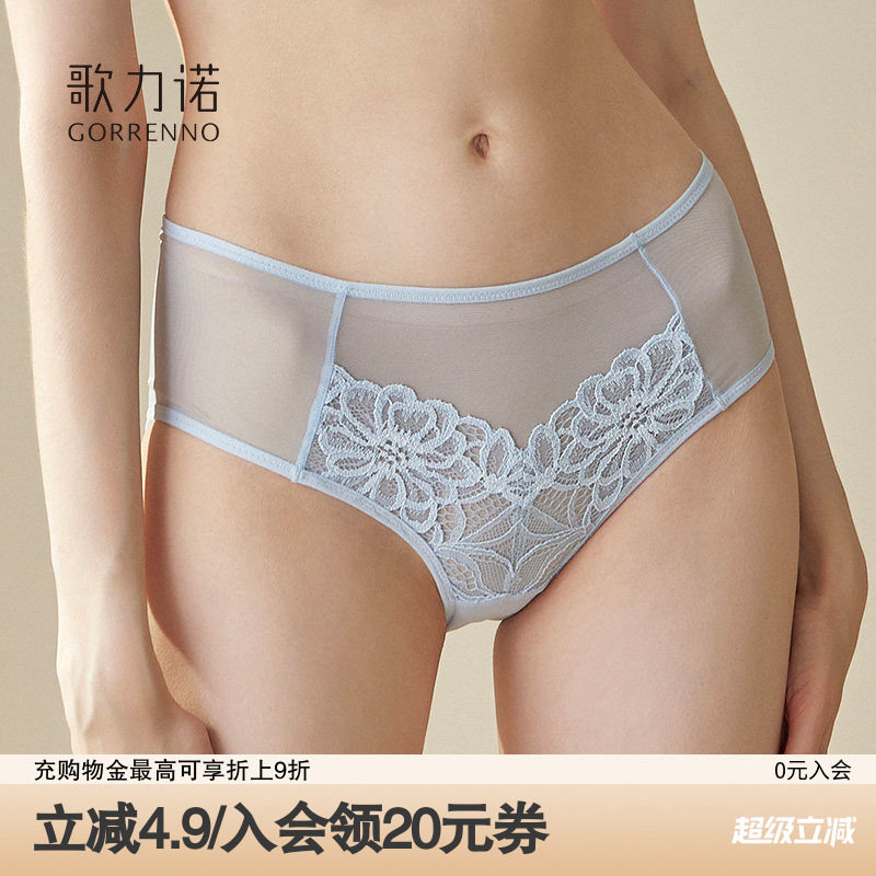 歌力诺性感蕾丝透明内裤女士火辣新款抗菌白色内衣薄款中腰三角裤