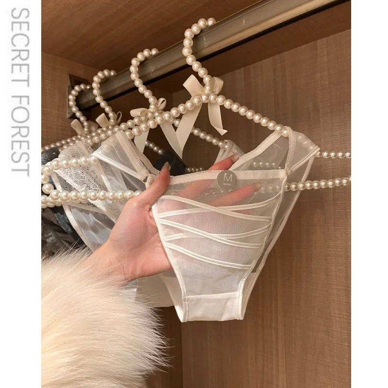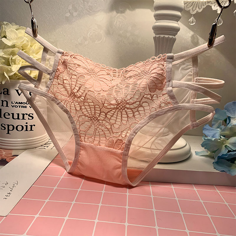 落羽星莎•法式性感蕾丝透明内裤女交叉镂空透气低腰棉少女三角裤