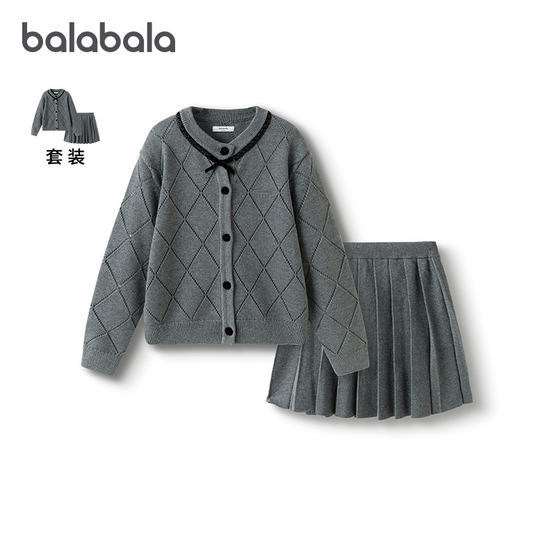 暇步士童装女童毛衣套装25冬新款儿童针织开衫半身裙两件套拜年服
