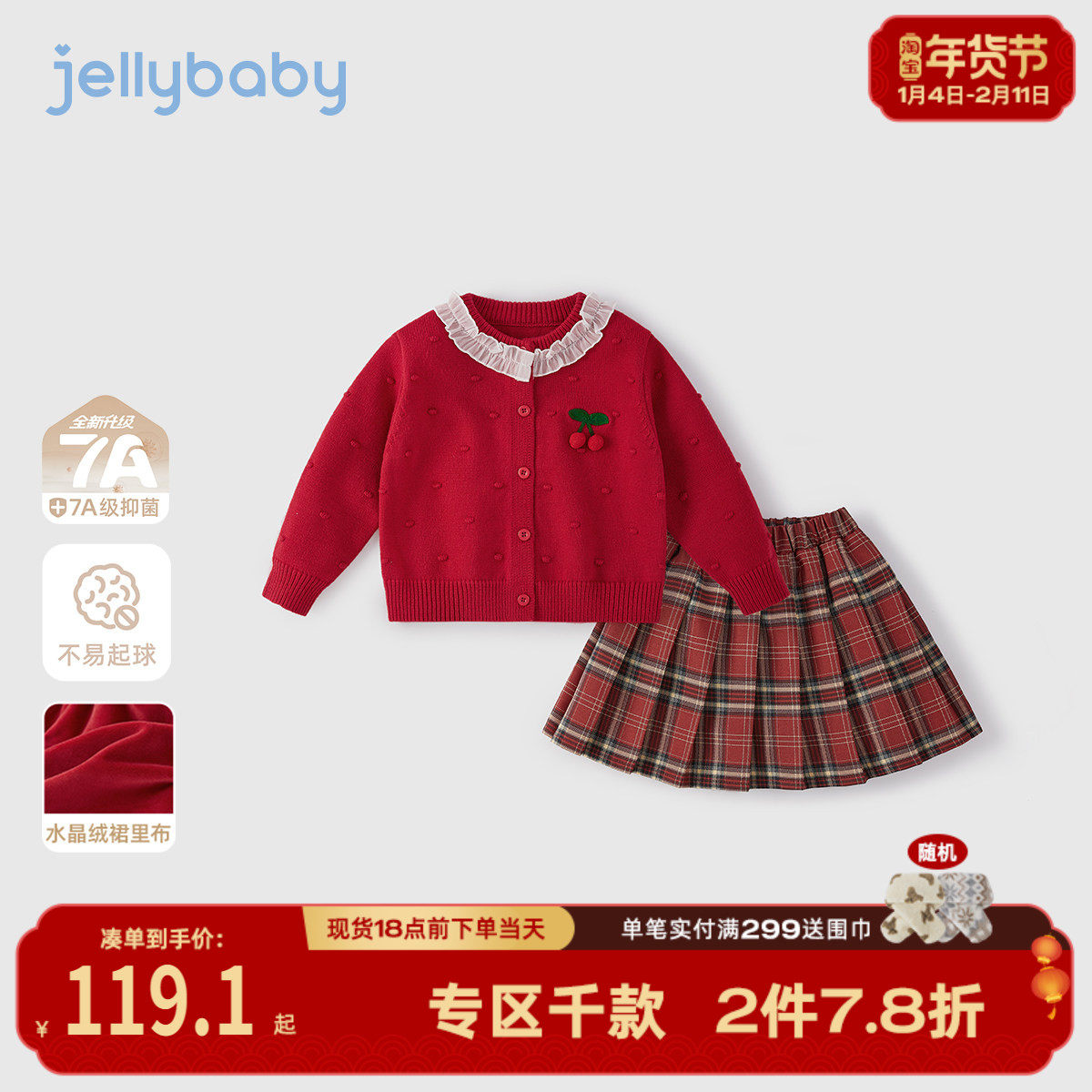 [保暖锁温]女童套装毛衣裙子红色针织开衫两件套宝宝秋冬儿童衣服