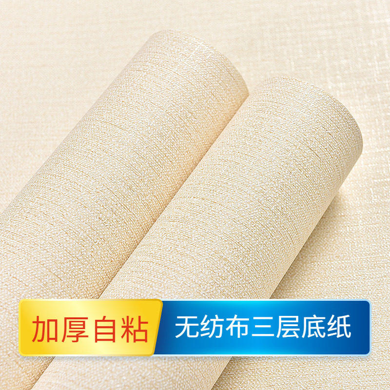 亚麻纯色素色无纺布自粘墙纸家装温馨卧室客厅防水加厚墙壁纸自贴