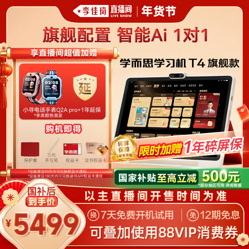 【李佳琦直播间母婴节】学而思学习机T4 幼小学初中高中通用t4儿童英语学习机AI智能大屏护眼平板电脑学习机