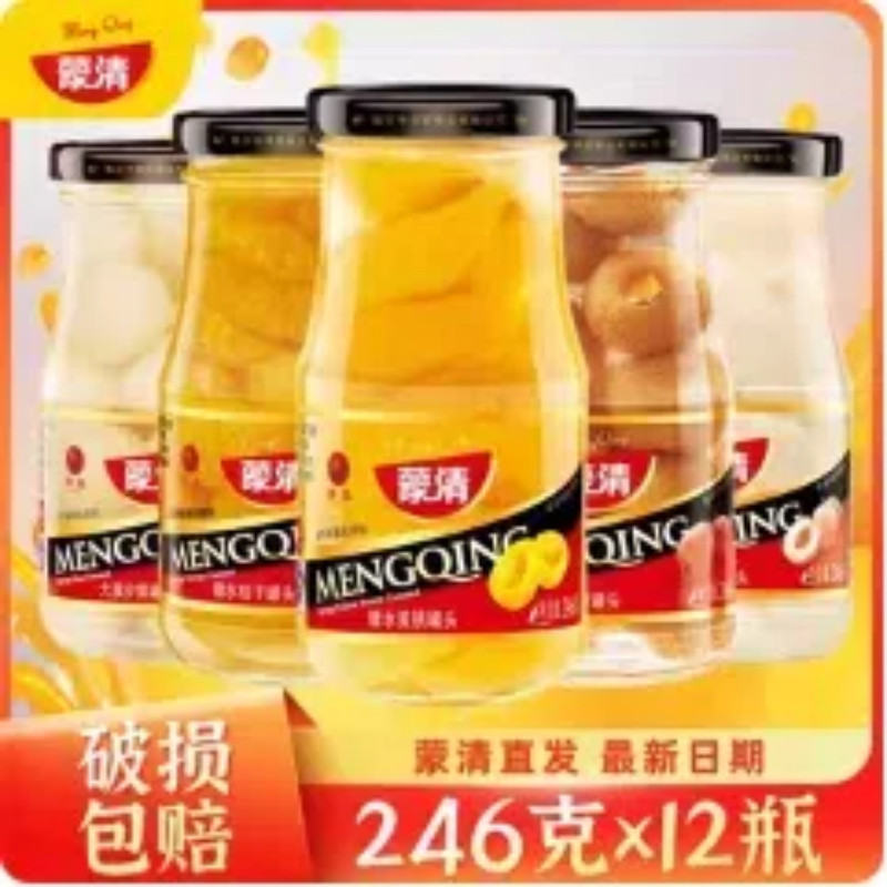 整箱蒙清新鲜水果罐头246g12瓶黄桃解馋开盖即食正品破损包赔包邮