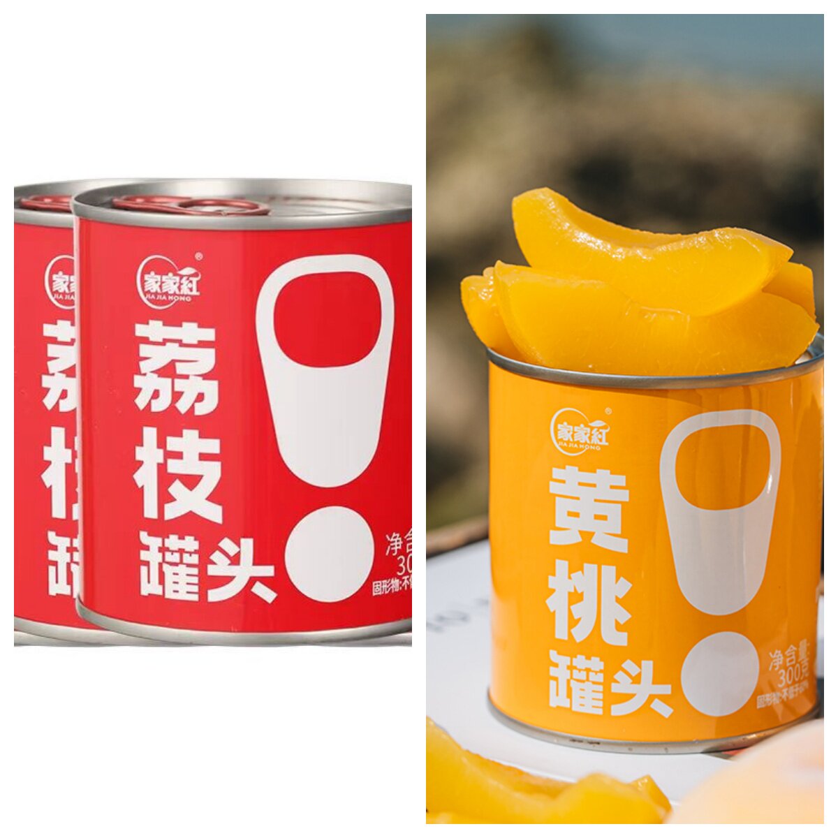 家家红新鲜水果罐装罐头300g12罐荔枝黄桃罐头休闲即食零食包邮