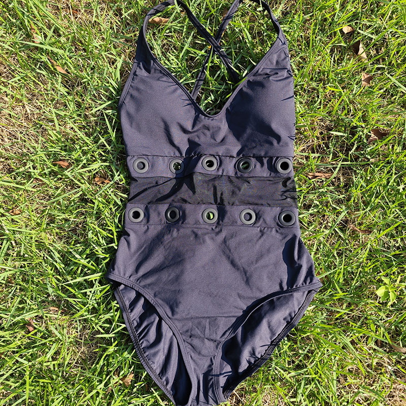 新款泳衣镂空绑带性感连体泳装黑色紧身女士比基尼Lace-up bikini