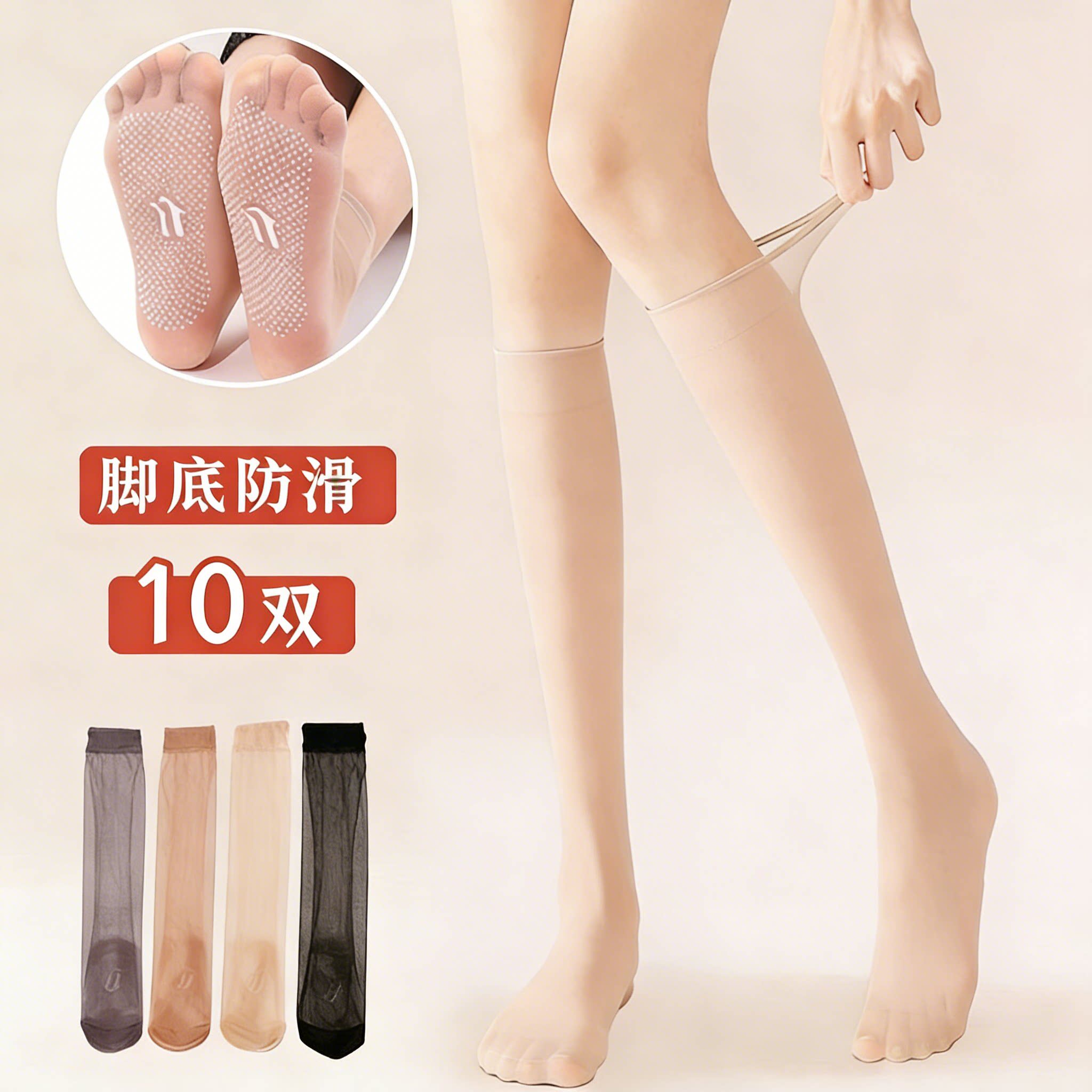 0D隐形袜中筒丝袜小腿隐形袜子透明长筒女超薄防勾丝长袜防滑水晶