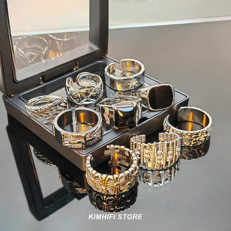 复古断层戒指男款暗黑风小众个性黑白纹理食指戒潮流开口单身男戒