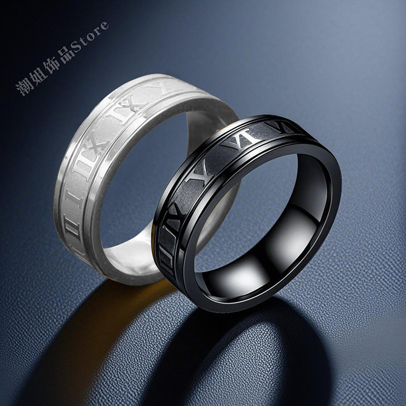 镶钻罗马数字转动戒指男高组感潮流百搭钛钢指环手饰男生戒子男款
