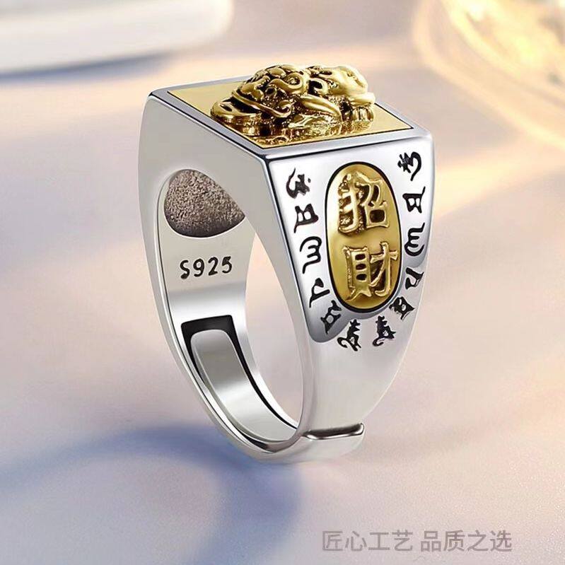 国风复古招财貔貅戒指男潮活口转运戒指男款银指环男士戒指可调节