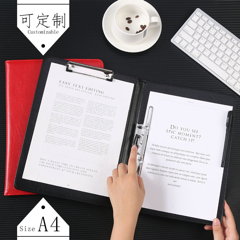 A4皮面文件夹板A5写字垫板夹商务签字板夹菜单夹酒店用便签夹厨房点菜夹磁性板夹可夹笔签约夹A6办公经理夹