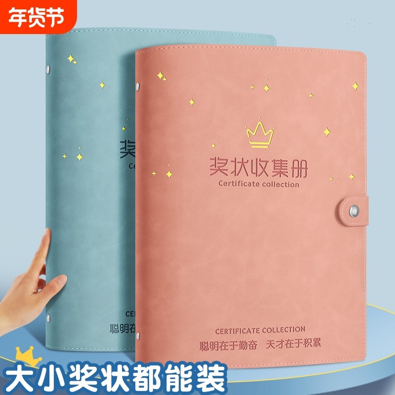 a4皮面奖状收集册男孩女孩a3荣誉证书装收纳小学生用文件夹的画册儿童收藏袋盒夹放作品相册本多功能册子展示