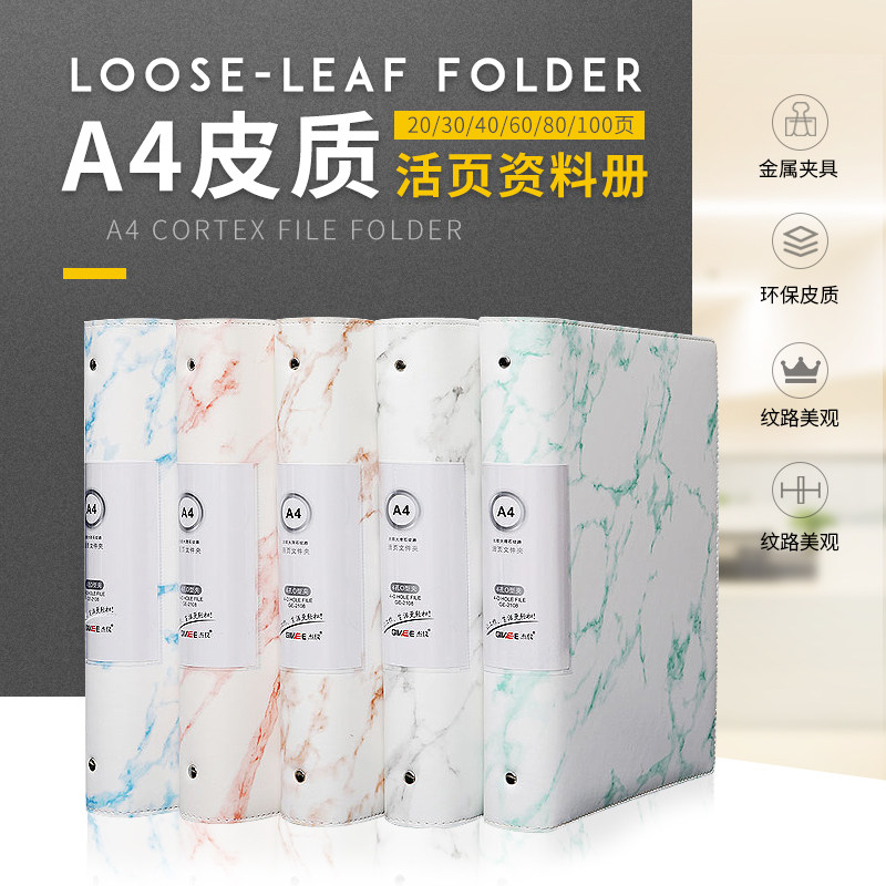 A4仿大理石纹活页资料册加厚防水皮面文件夹自由添加文件册文件袋